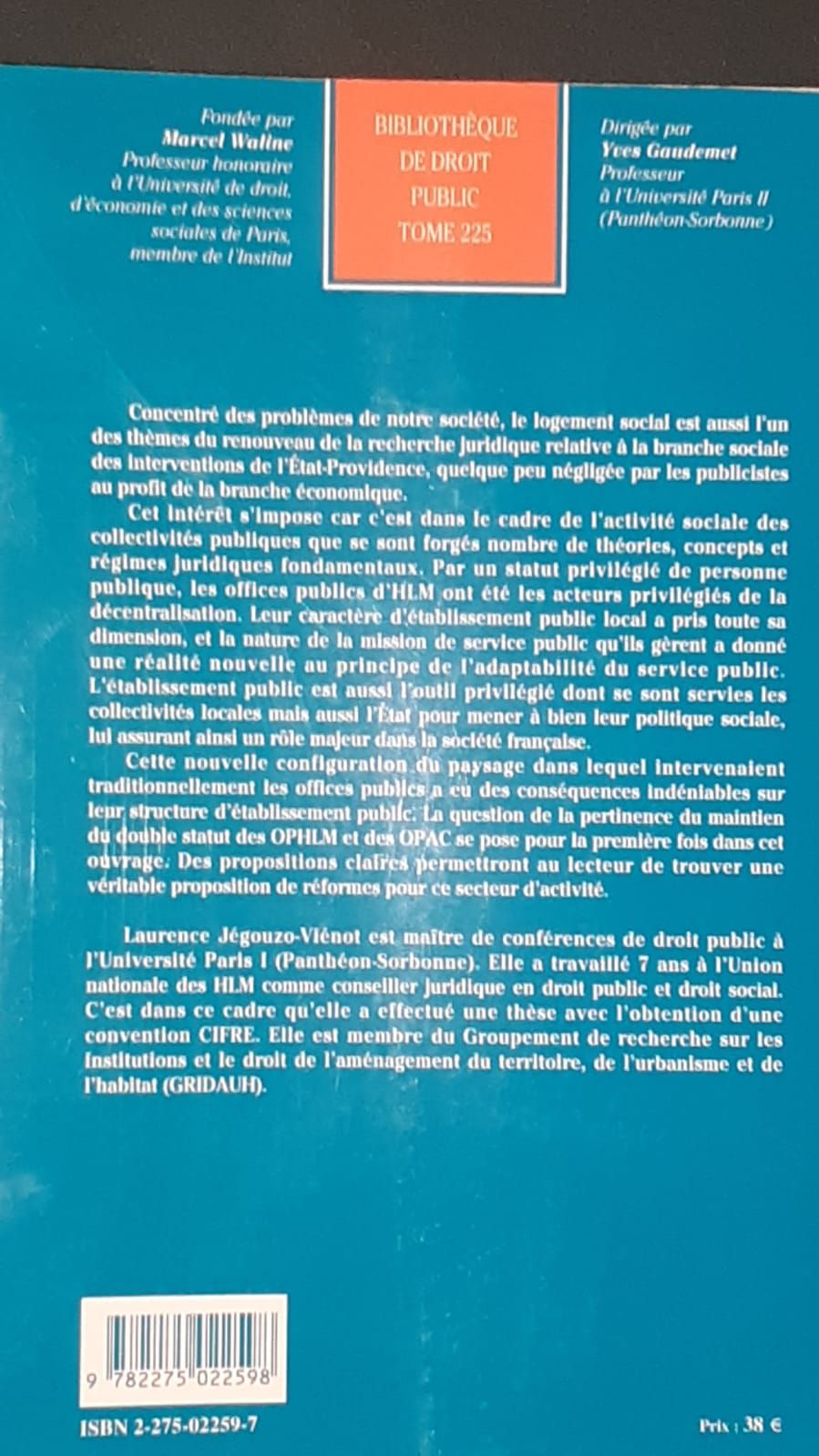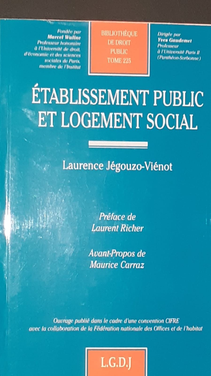 - Thèse : Etablissement public et logement social. Publication juin 2002 LGDJ.